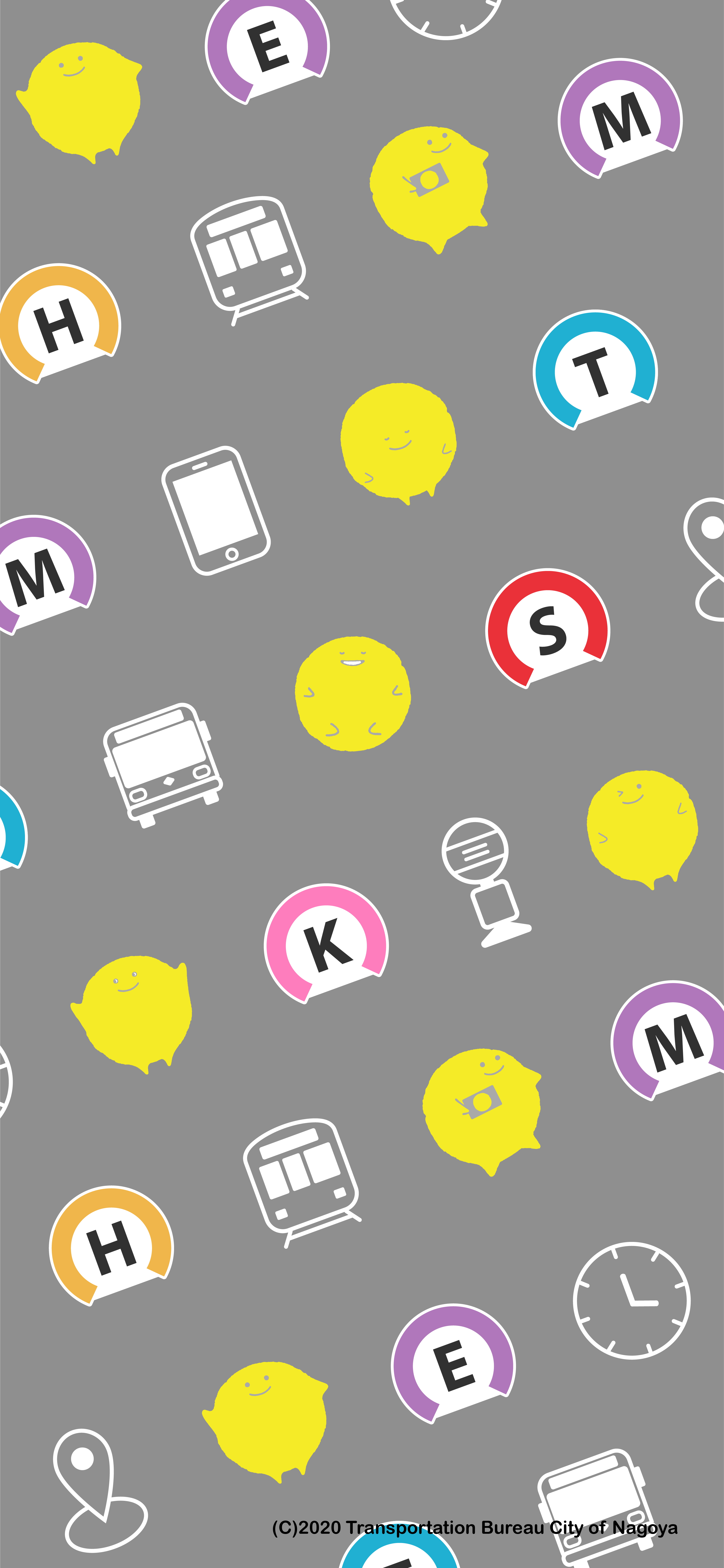 マナカとシンボルマークの壁紙見本です。地下鉄各路線のシンボルマークとマナカがたくさん並んだデザインです。
