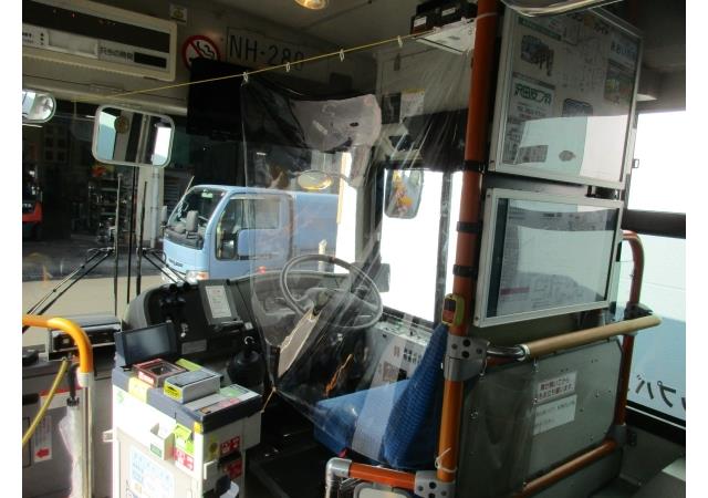 市バス運転席へのビニールカーテンの設置